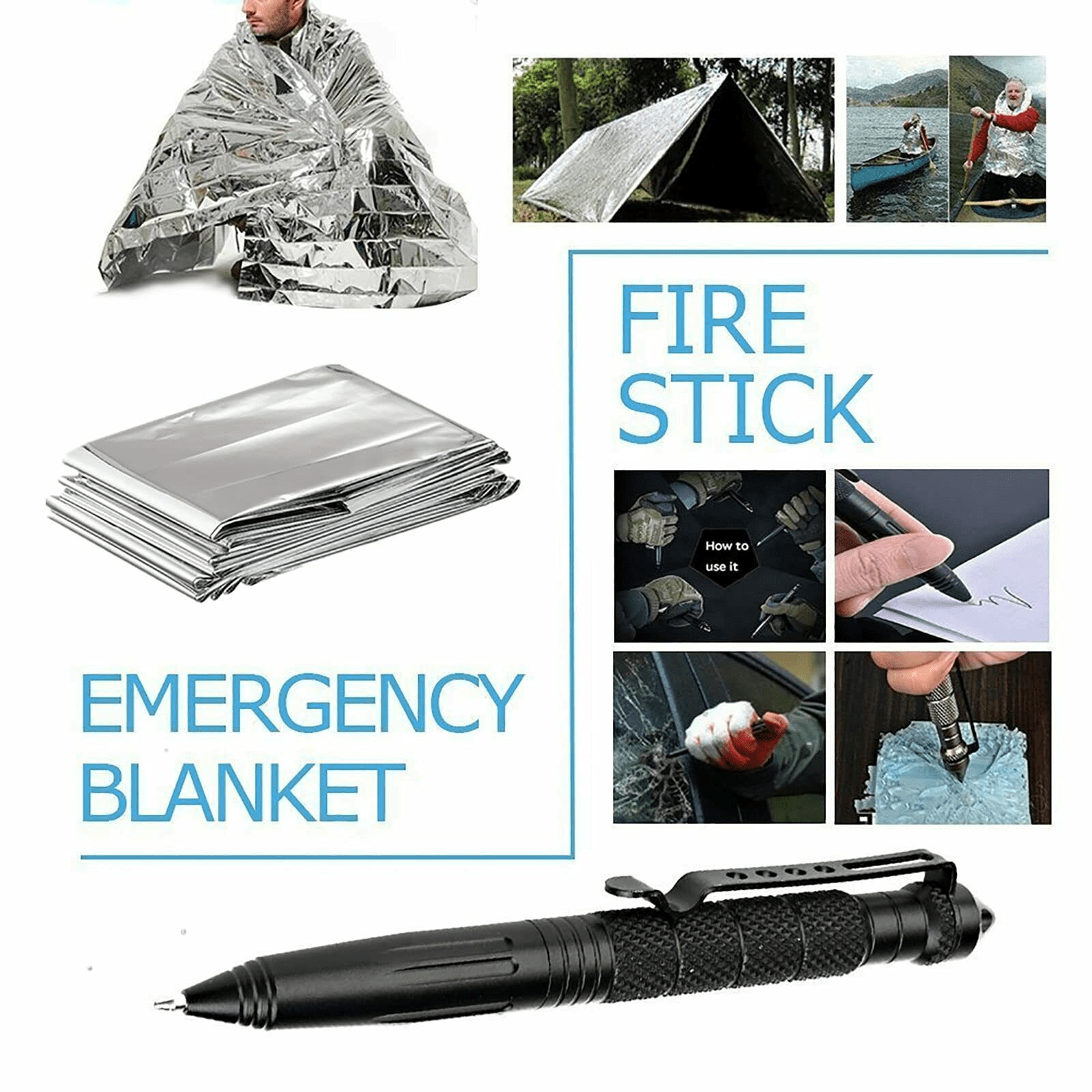 MULTI-FUNCTIONAL - Survival kits camping portable multi-tool box outdoor flashlight set tools. Car first aid kit; camping first aid kit; outdoor multi-purpose tool box; ready to go; is your little friend with peace of mind. The survival kits in this 10-piece set of survival kits are versatile; and there are dozens of functions in a few simple tools to meet the diverse needs of outdoor survival. The emergency blanket 82" x 52" size accommodates tall adults.