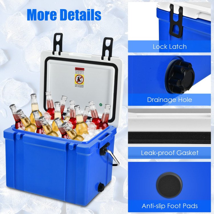 This beverage cooler features a commercial-grade insulation wall with enhanced thickness providing a tight seal to keep the cold inside for 4 days. With dual latches; this ice chest prevents the potential invasion of wildlife and leaking.