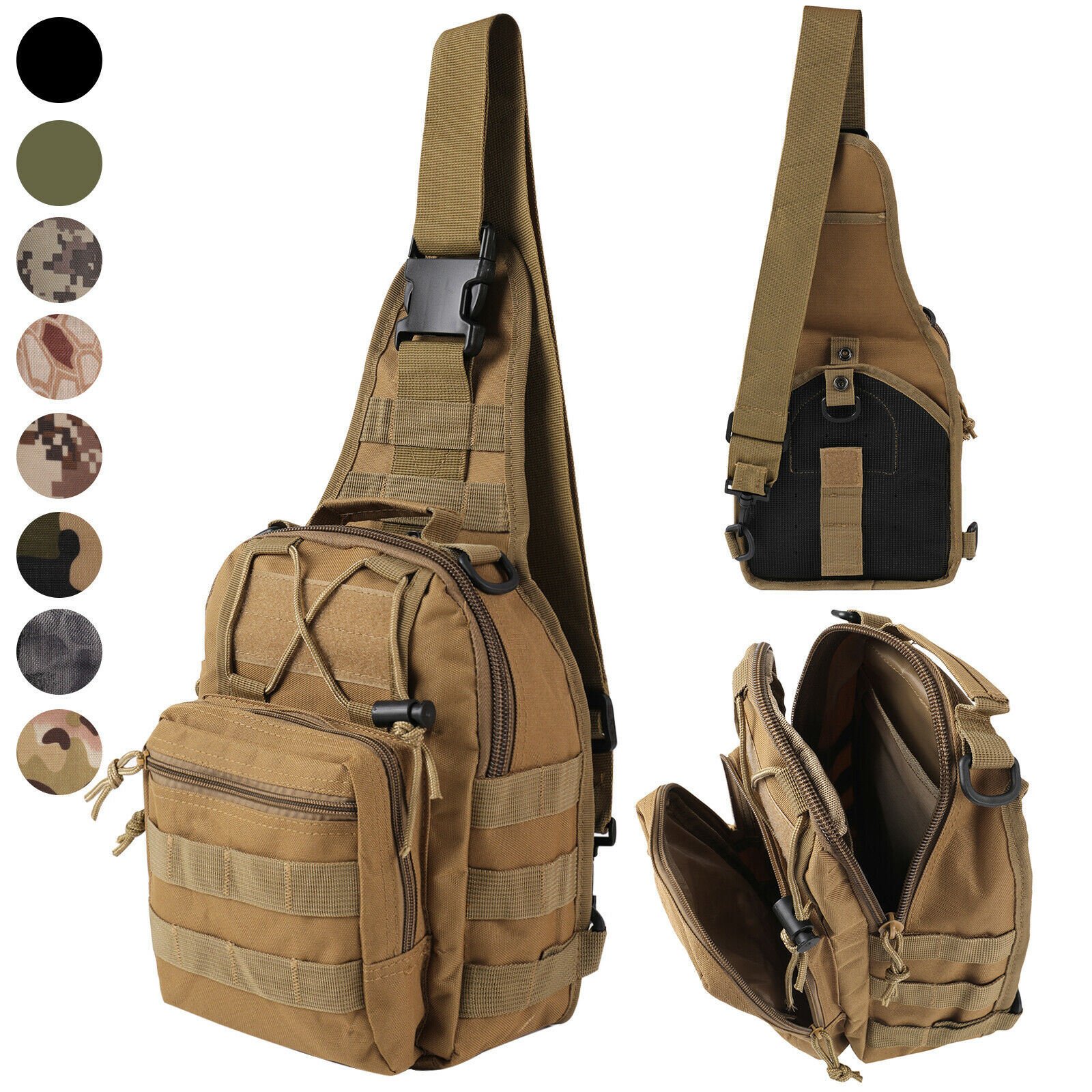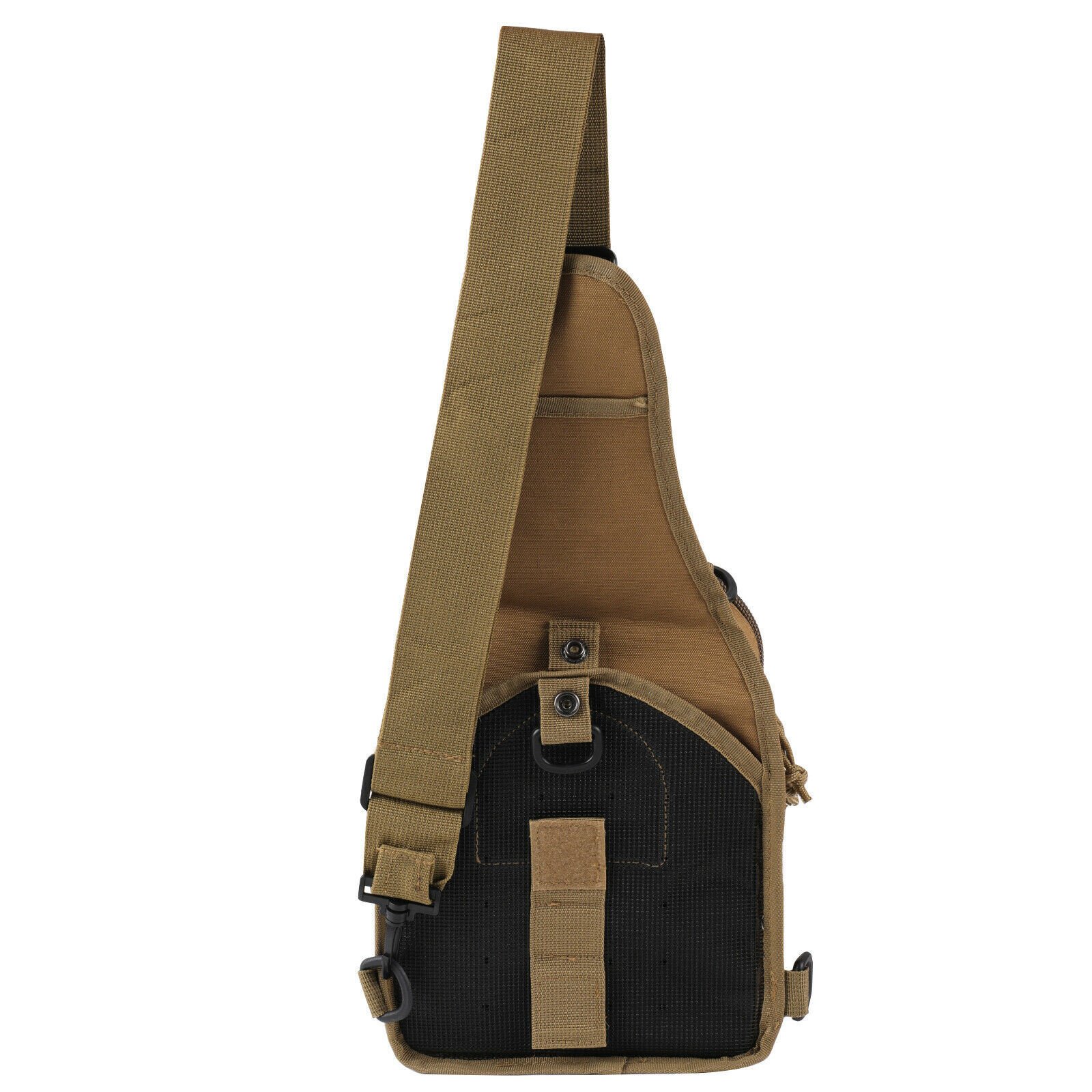 Premium MaterialMade of high-quality 600D Oxford cloth, waterproof, durable, strong enough to protect your objects from shocking, shaking off, dropping, bumps, splashing, etc.Molle SystemMolle system is used in many places to facilitate the loading of accessories, water bottles, and other commonly used items.Large CapacityLarge storage space. You can put a cellphone, pen, wallet, keys in the bag in daily life or doing outdoor exercises.MultifunctionalIt can be used both as a chest pack and shoulder bag, messenger bag, travel bag. Simple and durable to use, multiple pockets and structures ensure its practicability.Wide ApplicationPortable and lightweight, convenient to use. Suitable for most outdoor activities, great for running, jogging, camping, climbing, hiking, biking, travel, etc.Specifications:
