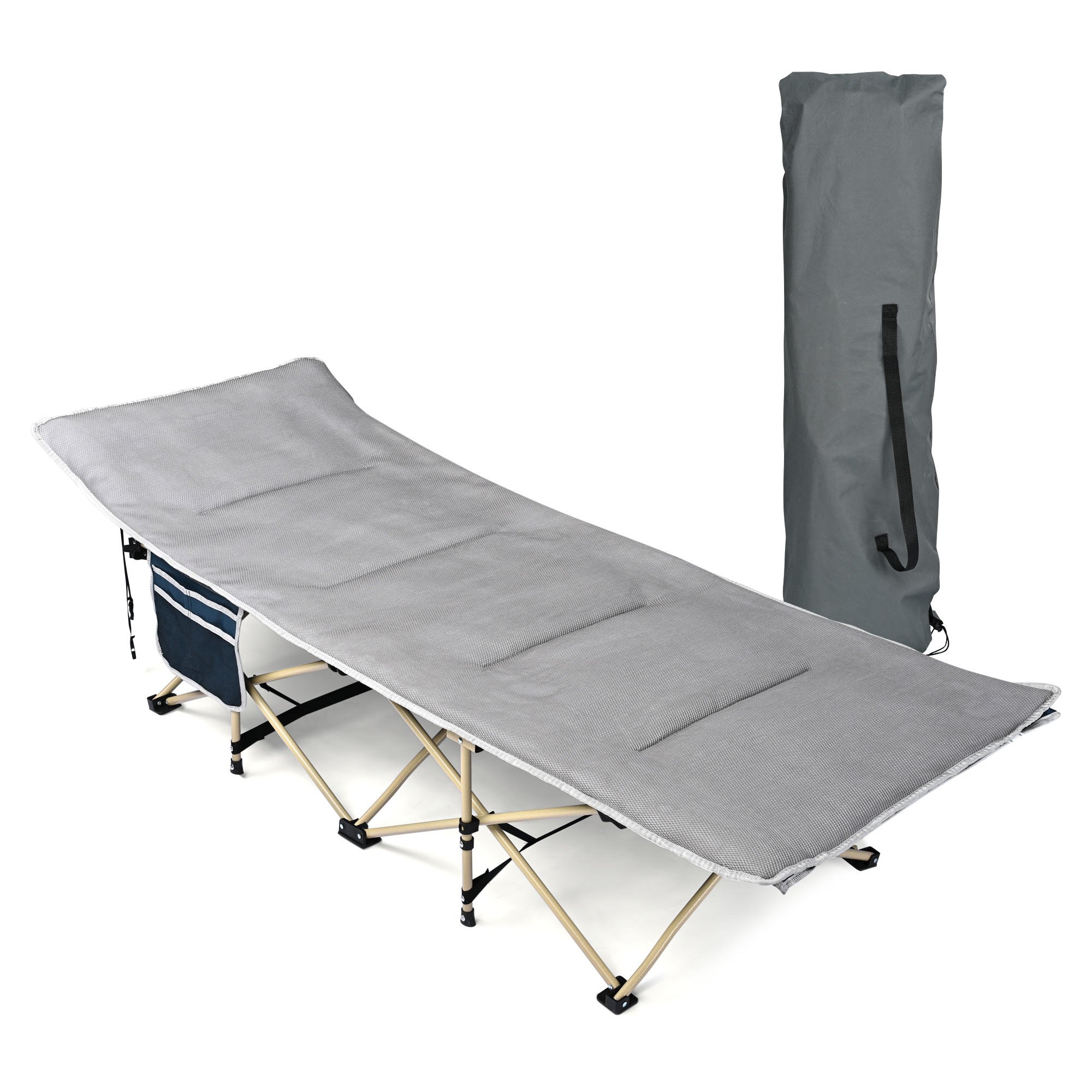 - Foldable & Portable - 75"x27"x14" Folding Camping Cot, features compact folding size(7"x8"x39") and weighs only 12.3 Lbs for effortless transportation; With portable bag, convenient to carry, store in the car trunk or put it on a motorcycle for travel, camping, picnic, fishing and other outdoor activities
